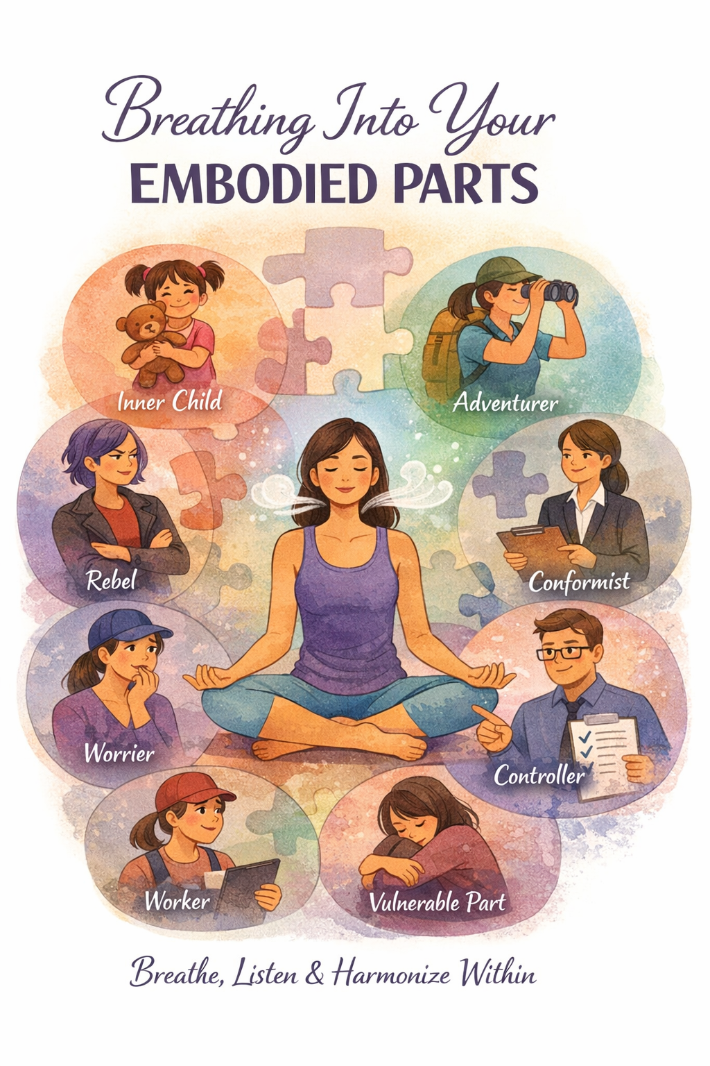 Embodied Parts work is the process of becoming aware of, and learning to integrate, the parts of ourselves that we tend to hide and deny. Here we also include working and supporting our embodied parts with breath.